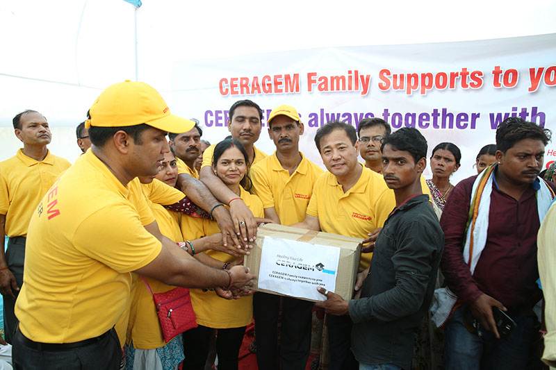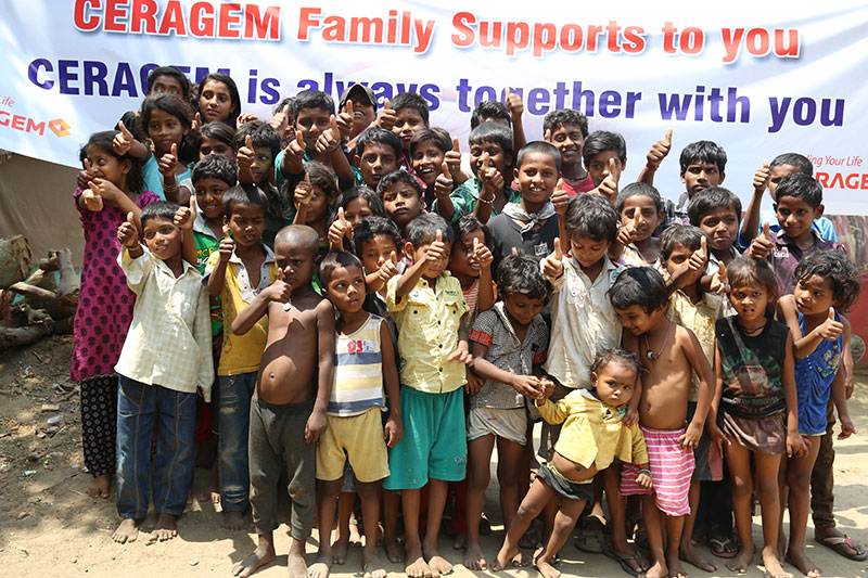 Our support: Donation programme – In May 2015, Ceragem organised for the required necessities and donations with the help of HQ employees, centre owners, staff and customers. They participated in the donation campaign to purchase basic necessities for the slum people and to support them with living expenses.