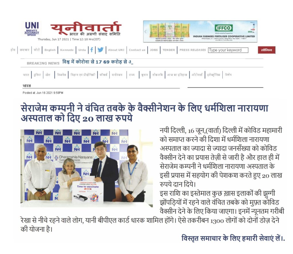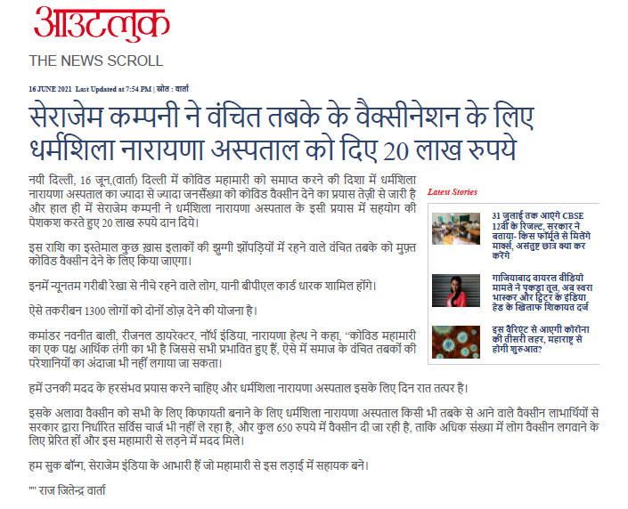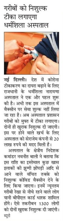 Covid-19 Free Vaccination CSR Activity Dainik Jagran, Amar Ujala, Outlook and Univarta